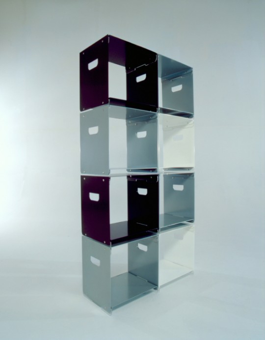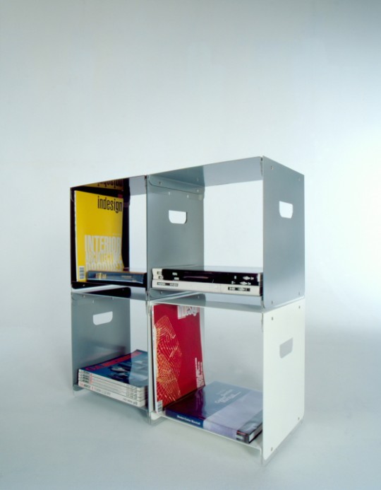 Using the same interchangeable spirit to create modular sets of stackable shelving units, the idea was a hit with architecture firms and private clients who wanted customized storage.