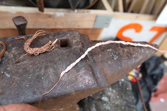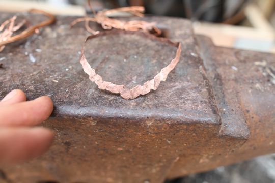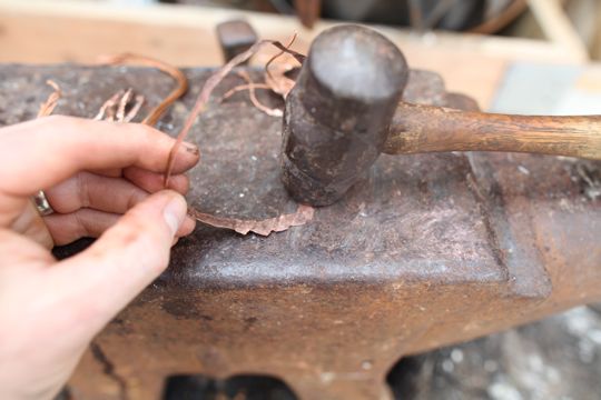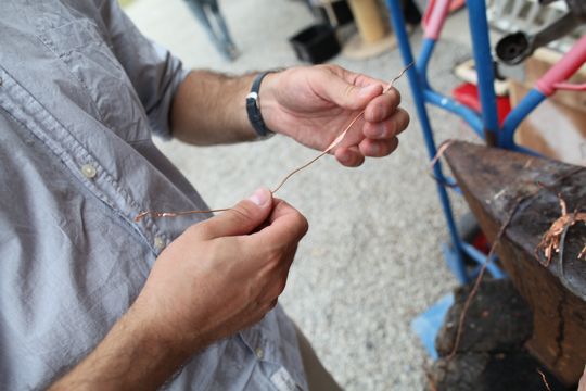 ‘The copper wire is wrapped and twisted together. It is then forged with the hammer again. The old anvil decorates the surface of the object’ – Tomas Kral Boisbuchet – Image Dean Homicki